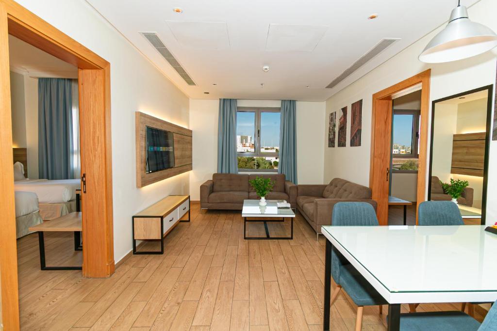 Hasanah Suites in Al Madinah offers aparthotel-style accommodations designed for comfort and convenience. Each unit features air conditioning, a private bathroom with a bidet, and a well-equipped kitchenette. Family rooms are available, making it an excellent choice for groups and families. Guests can also enjoy complimentary WiFi, a pleasant garden area, and free on-site private parking.