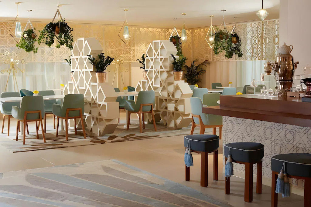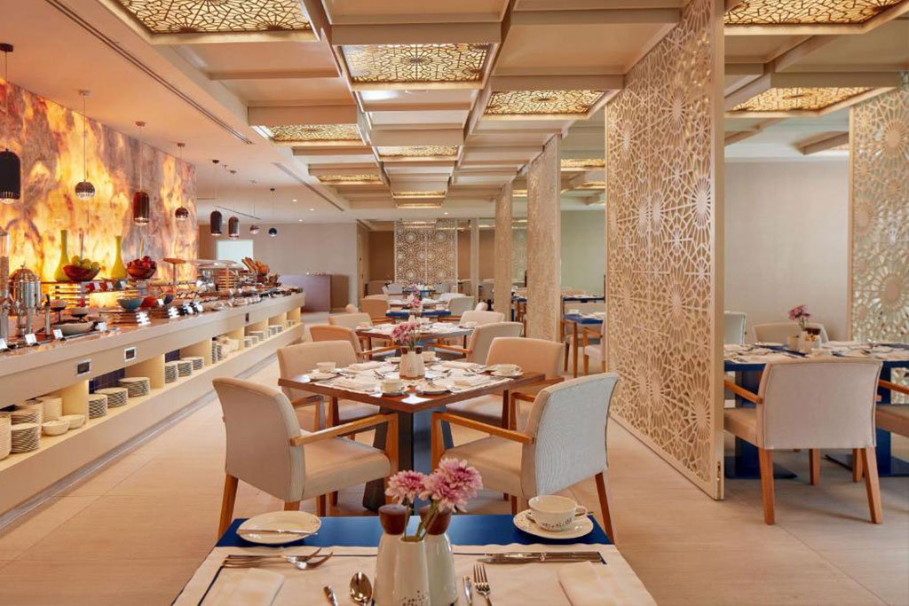 Guests can explore a diverse culinary journey across the hotel’s distinctive dining venues. Midan, located on the 6th floor, features a vibrant open kitchen concept, creating an engaging dining experience. Shalimar offers a contemporary lounge setting, serving signature mocktails and curated tea experiences inspired by Eastern traditions.